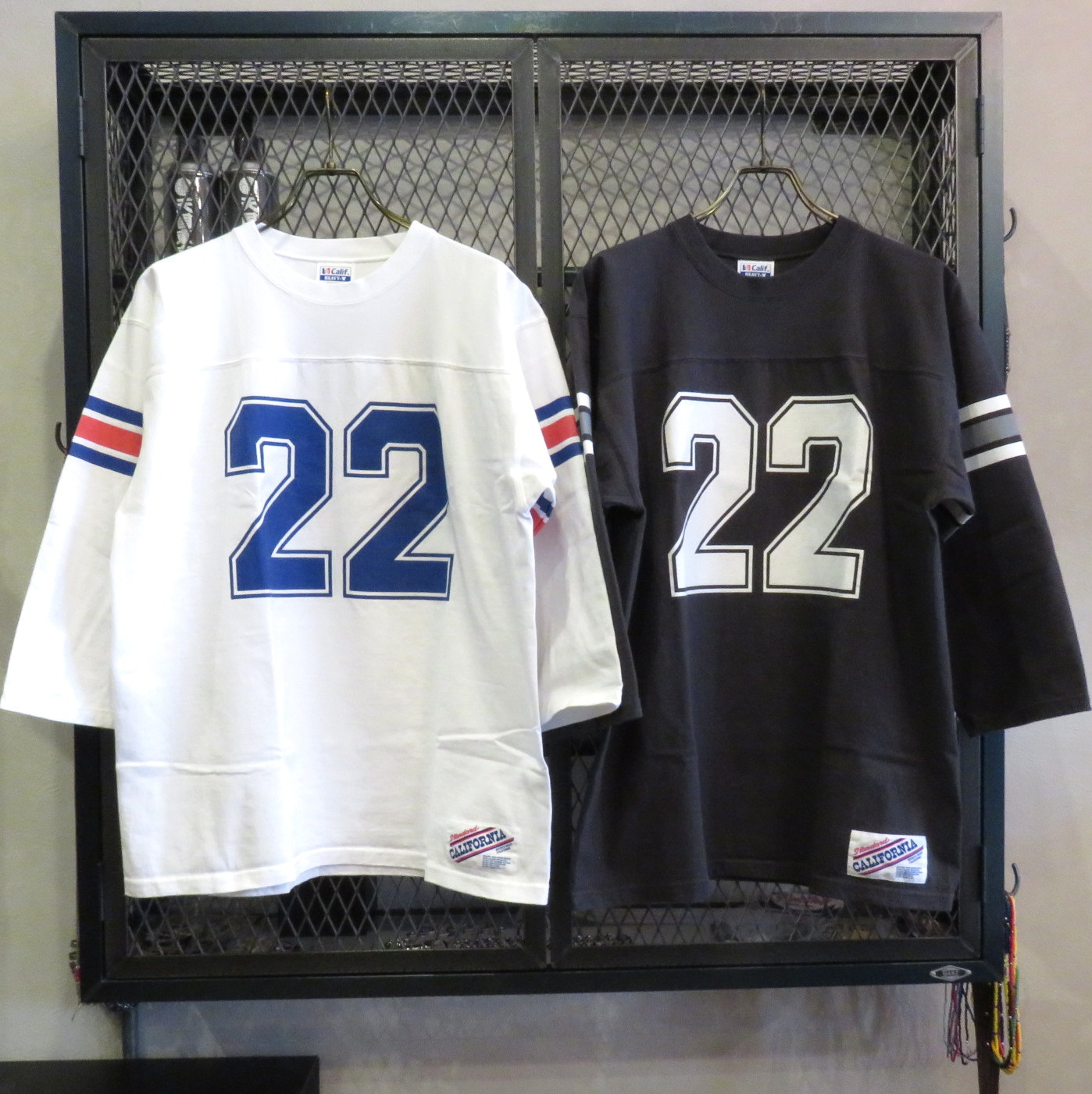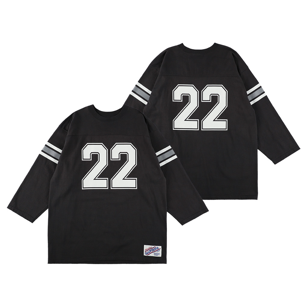 フットボールTらしい袖の配色プリントや、前後の大きなナンバリングプリントが目を惹くこちら。