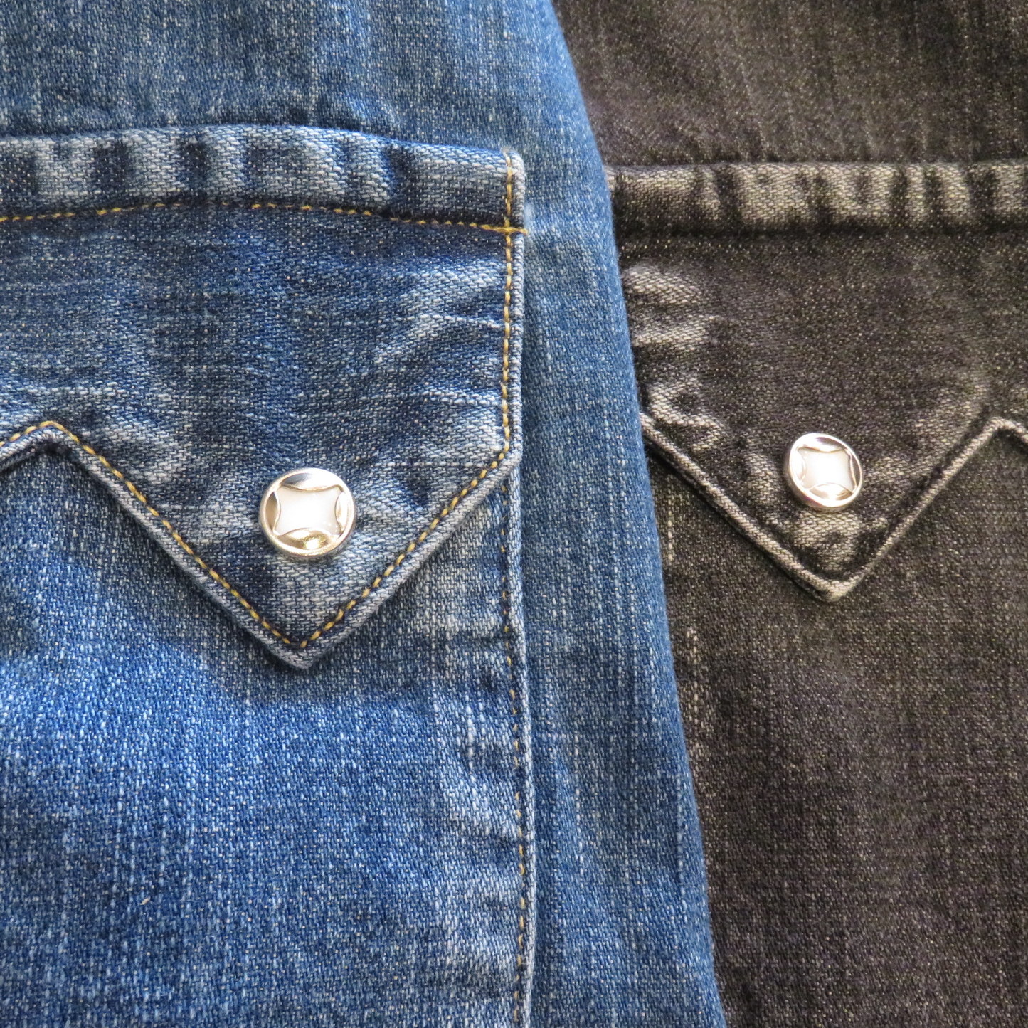 ヴィンテージのショートホーン型デニムウェスタンシャツをベースにオリジナルで製作したこちら。