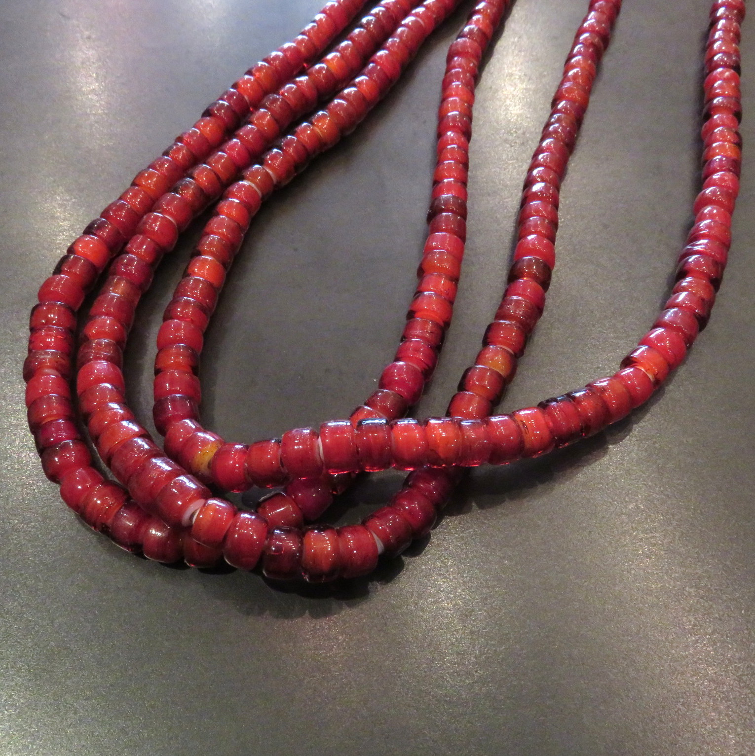 4ミリビーズ×シルバービーズ ネックレス(レッド) 50CM