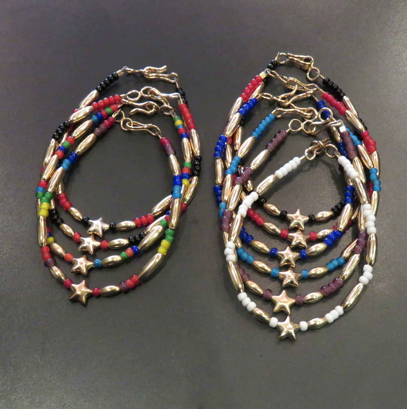ホワイトハーツビーズ(レッド)×シルバー スターブレスレット・星1つ(レギュラー)